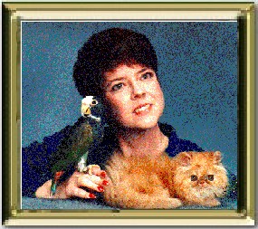 Featherland is the home of Michael and Lorraine Shelton. Lorraine is the one pictured above... the one without fur or feathers. Pictured is a red persian kitten from Featherland Cattery, CH Featherland's Rocket J. Cat. "Rocky" was my first show cat of my own breeding. After attaining his championship in both CFA and TICA in 1989, he went to his new home in the Netherlands.